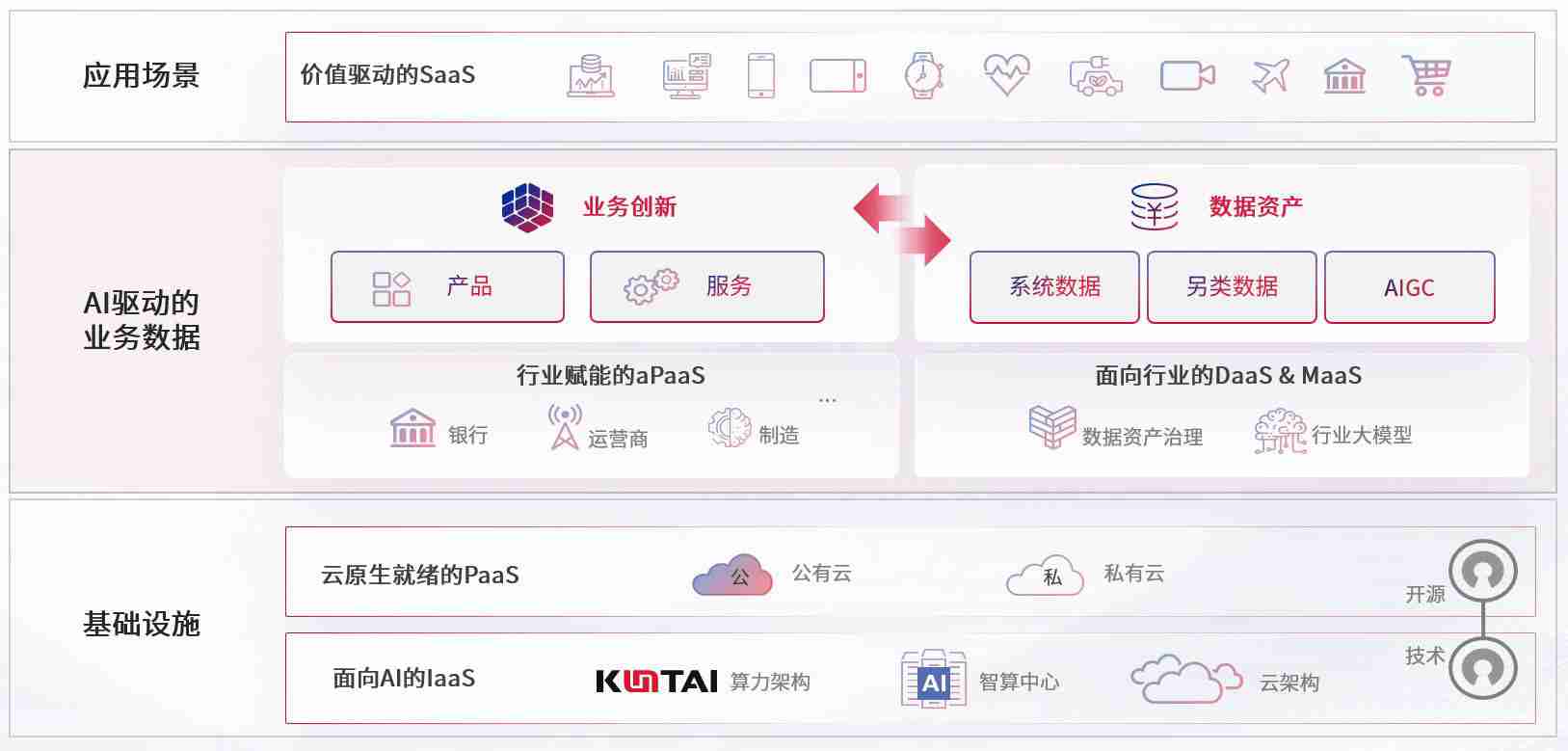 数字时代,,,围绕企业数字化转型的关键要素,,,尊龙时凯数码开创性的提出数云融合战略和技术体系框架,,着力在云原生、、数字原生、、AI原生和信创产业上架构产品和服务能力,,,为处在不同数字化转型阶段的快消零售、、、汽车、、、金融、、医疗、、、政企、、教育、、运营商等行业客户提供泛在的敏捷IT能力和融合的数据驱动能力,,,,构建跨界融合创新的数字业务场景和新业务模式,,,,助力企业级客户建立面向未来的核心能力和竞争优势,,,全面推动社会的数字化、、、智能化转型升级。。。